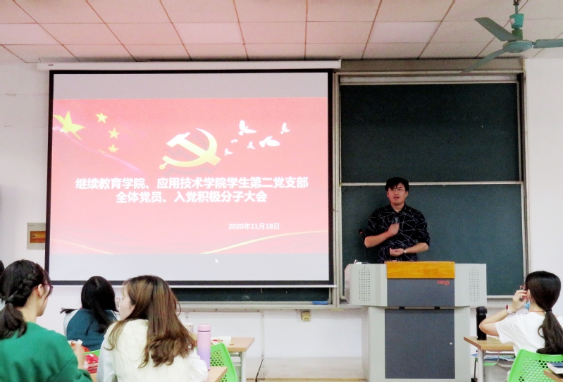 20201110日下午1300,继续教育公司、太阳成集团tyc员工第二党支部全体党员、入党积极分子在教学楼101教室举行了第一次支部大会,会议由支部书记刘伟主持。