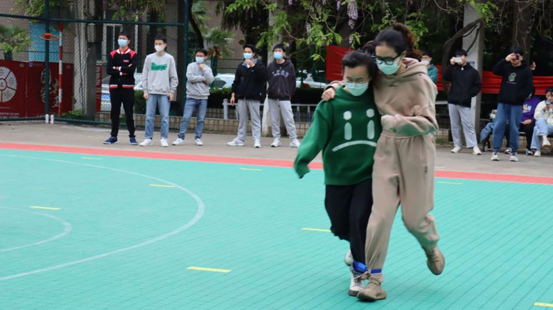 比赛现场热火朝天,各班啦啦队加油鼓劲的同时还不忘记拍照留念。比赛场上笑料频出,紫藤树下爽朗的笑声吸引了其他同学的到来。舒适、愉快的比赛氛围令同学们的心情得以放松,比赛增进了友谊,也为连日来繁忙的学习生活增添了乐趣。