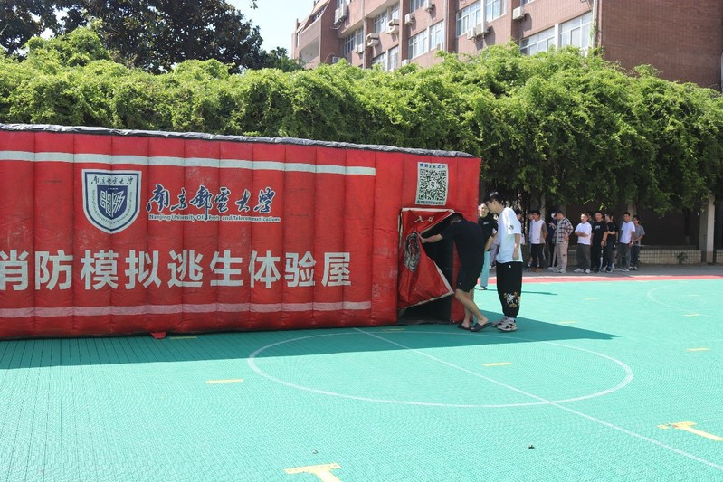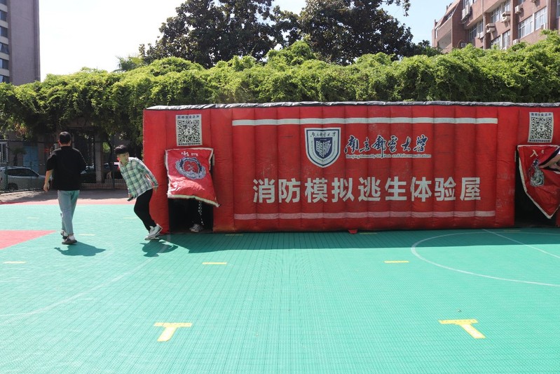 在正式演练开始之前,消防工作人员为同学们讲解了模拟烟雾逃生帐篷的内部构造以及逃生技巧,目的就是在烟雾缭绕的帐篷内模拟感受火灾发生时的现场状态,按照帐篷内的标识找到正确的道路,最后顺利地从出口“逃生”。在工作人员的讲解下,同学们一起学习了火场逃生的知识要点,重点强调了一定要弯腰、低头,避免吸入火场“有害烟气”,以湿毛巾捂住口鼻等,特别提醒同学们不要惊慌,安全有序逃生。