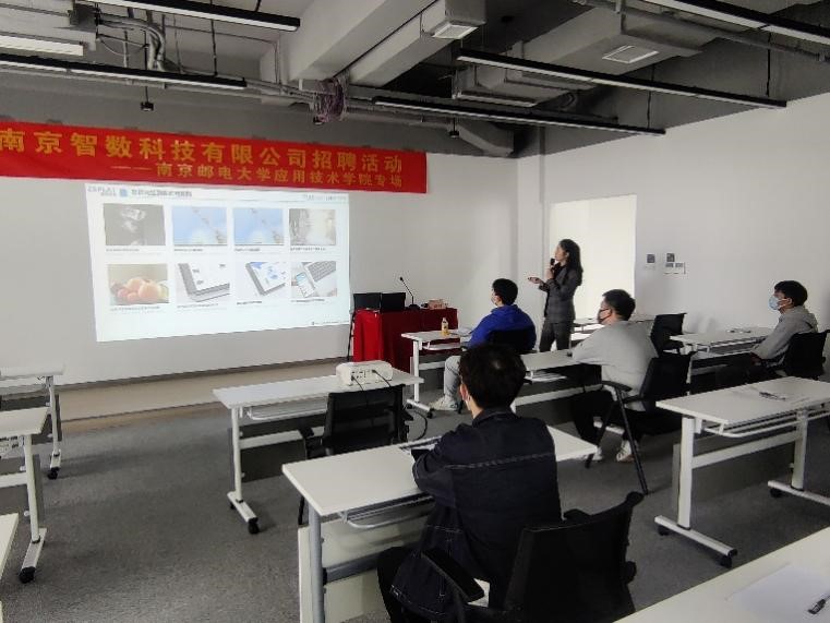 招聘会伊始,南京智数科技有限公司人力资源部负责人通过播放宣传片、PPT展示以及面对面交流等方式向同学们详细介绍了公司的概况、职业发展方向、薪资福利以及人员需求等方面情况。同学们从中了解到南京智数科技有限公司是一家拥有自主知识产权的高新技术企业,公司汇集了各个方面的专业人才,员工富有朝气,既有精深的专业知识,又有丰富的实践经验、市场经验。