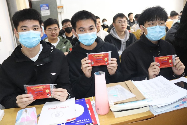 姜老师说这是一次考研送温暖活动,这里面的桂花采自公司丹桂苑,由公司81级员工、广东领越通讯技术有限公司董事长李顺成捐赠千株丹桂苗建成。祝同学们蟾宫折桂,马到成功!