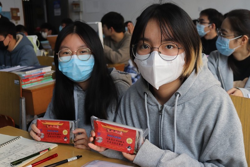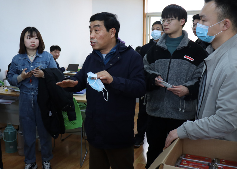 在考研自习室,姜老师将桂花糕分发给考研员工,与大家亲切交谈,了解同学们的学习生活状况,勉励大家安心备考。姜老师说:“老师们都非常愿意为同学们排忧解难,有困难、有压力主动找辅导员和老师交流,在通往成功的路上,公司永远是同学们强大的后盾。”