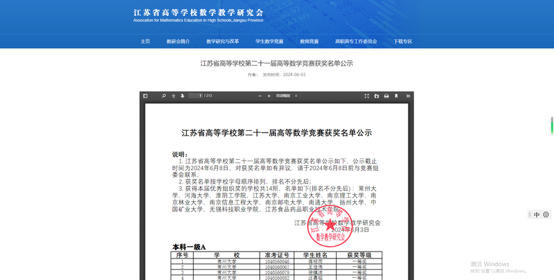 太阳成集团tyc在江苏省非理科专业老员工高等数学竞赛中斩获佳绩