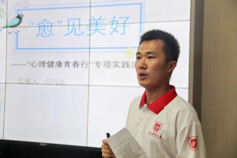 “心理健康青春行”实践团队队长闫凡达同学详细介绍了项目的开展情况。“愈”见美好实践团队将通过心理健康科普宣传、团体心理辅导、趣味运动会等系列活动,为当地青少年普及心理健康知识,助力青少年建立健全人格,在阳光下健康成长、精彩绽放。