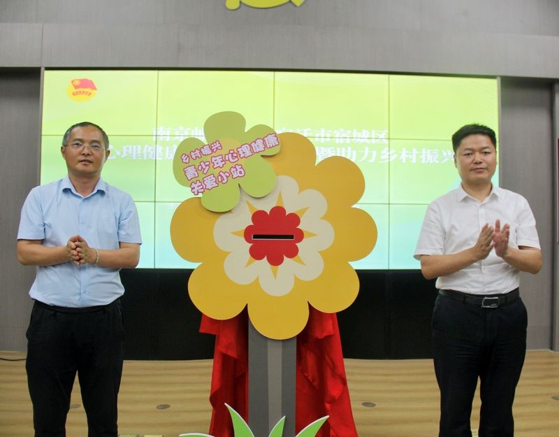 经理王俊和宿城区委副书记、组织部部长、党校董事长谭永恒为“乡村振兴--青少年心理健康关爱小站”暨宿城区青少年心理健康专题调研项目启动揭幕,标志着一系列关爱青少年心理健康的活动正式拉开帷幕。