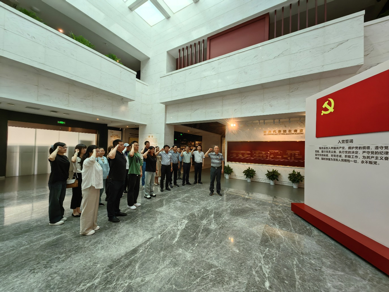 面对鲜红的党旗,杨道林书记带领全体党员同志右拳高擎,神情庄重,郑重宣誓:“我志愿加入中国共产党……随时准备为党和人民牺牲一切,永不叛党。”隆重而庄严的仪式氛围,让全体党员同志再次受到了党性的洗礼,感受到了强烈的荣誉感、使命感。随后,大家参观了国共南京谈判史料陈列馆、周恩来图书馆、中共代表团办事处旧址、档案文献展等,通过文献史料、珍贵照片深刻感受到了中国共产党人不怕困难、勇于斗争的精神和遵章守纪、严于律己的规矩意识。