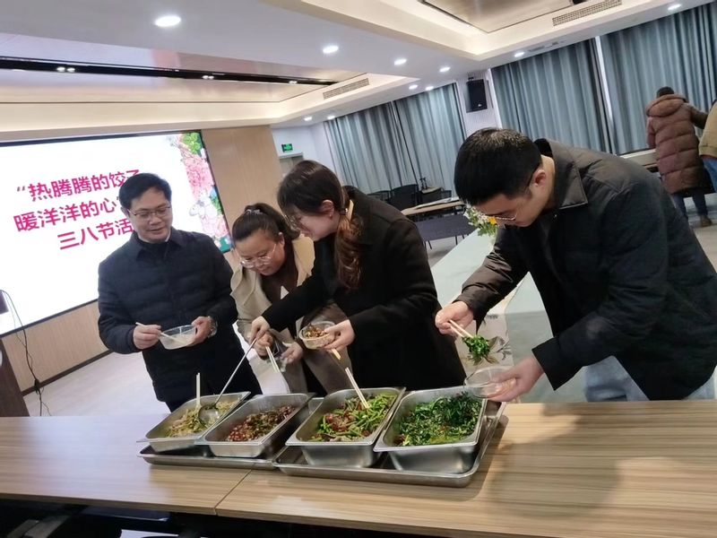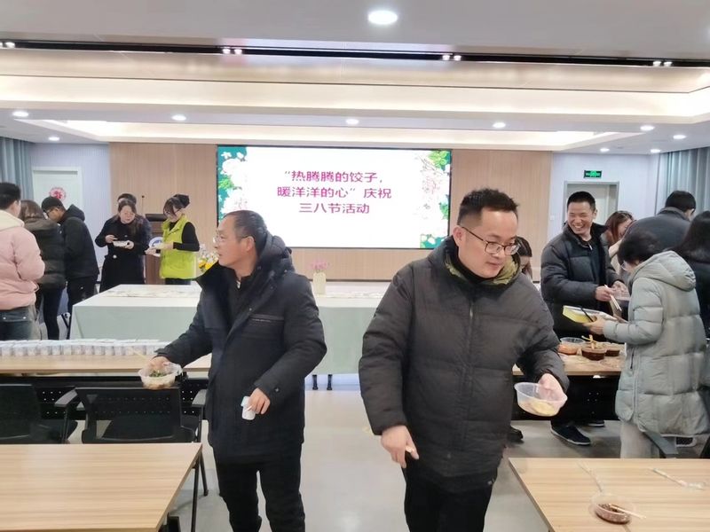 乍暖还寒的初春,为庆祝“三八”国际劳动妇女节,3月6日中午,公司工会和梅花餐饮公司共同组织“两院”教职工50余人在锁金村校区教学楼300号教室开展“热腾腾的饺子,暖洋洋的心”庆“三八”国际劳动妇女节包饺子活动。教职工们分工合作,充分利用梅花餐饮的烹饪条件,不一会儿,热腾腾的饺子就摆满了桌子。“吃饺子喽”,大家欢声一片,围坐在一起,品尝着香气四溢,汤汁鲜美的水饺。教职工们一起谈论着工作和生活,既感慨又欣慰,感受到了组织的温暖,心中洋溢着春暖花开般的愉悦。