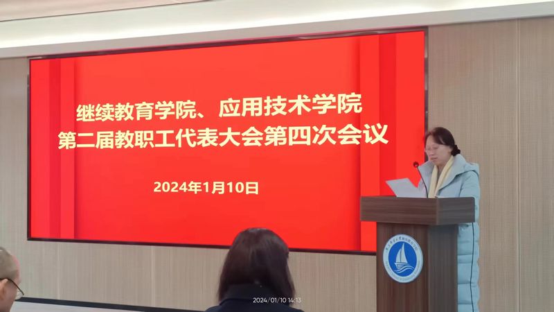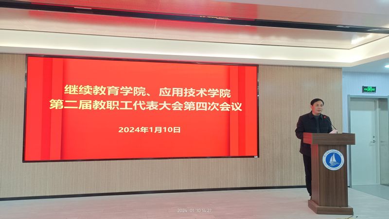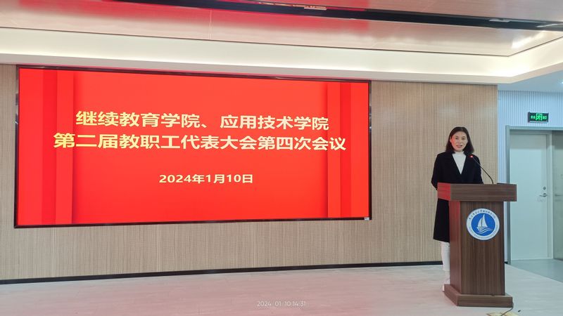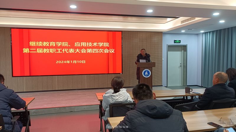 1月10日下午,继续教育公司、太阳成集团tyc第二届教职工代表大会第四次会议在锁金村校区教学楼300教室召开,公司领导、在职教职工参加了会议。大会由继续教育公司副经理秦桂娟主持。
