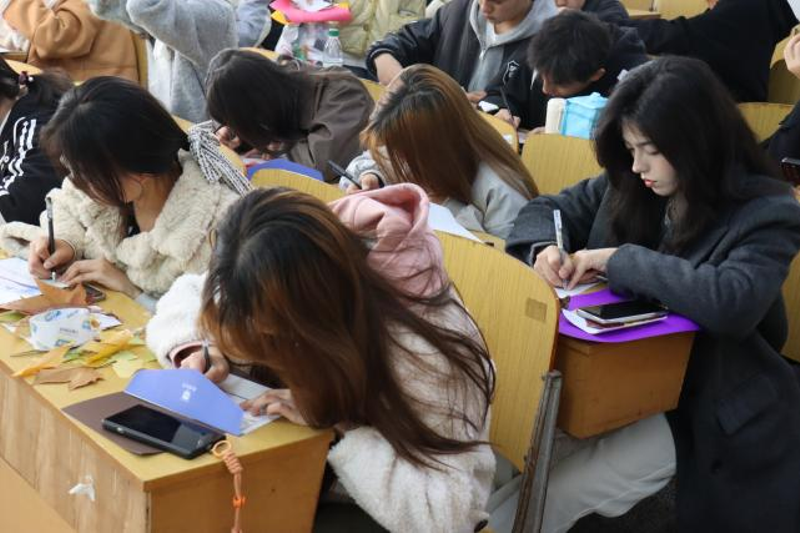 随后,员工们写下一封给未来自己的信。在这封信中,同学们详细规划自己在大学期间的阶段性目标,以及对未来职业生涯和个人发展的期望。这封信将被密封在一个特制的信封中,等待未来的某个时刻被重新开启。