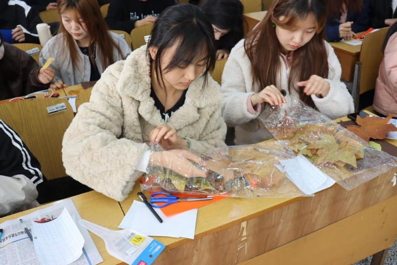 活动伊始,员工们将上周在栖霞山收集树叶,制作成书签。在这个过程中,员工们在书签上写下对老员工活的感悟和对未来的初步设想,作为与未来自我对话的起点。
