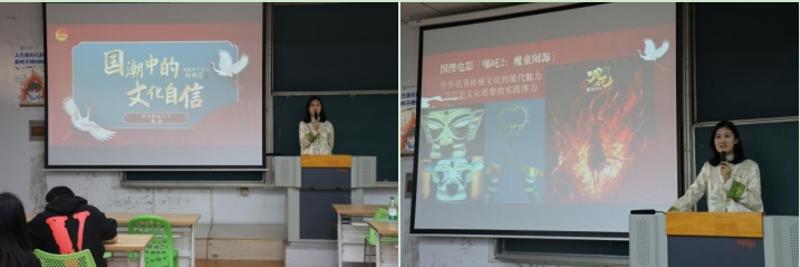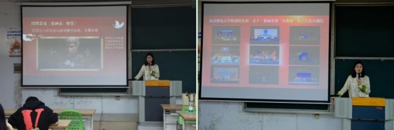鲍捷老师以《国潮中的文化自信》为主题,引用哪吒2、黑神话悟空火爆全球的例子,分析了中国潮中的东方美学、人物形象和价值观,展现了中国传统文化的深厚底蕴与文化自信,鼓励青年参与文化传承和发展。此外,鲍捷老师讲述通过参演公司原创红色校史剧《赤子》的亲身经历,生动重现了革命岁月里公司师生所展现出的英勇无畏与感人至深的故事。鼓励小柚子们秉承南邮赤子的初心与使命,为发扬中国传统文化贡献自己的青春与智慧。